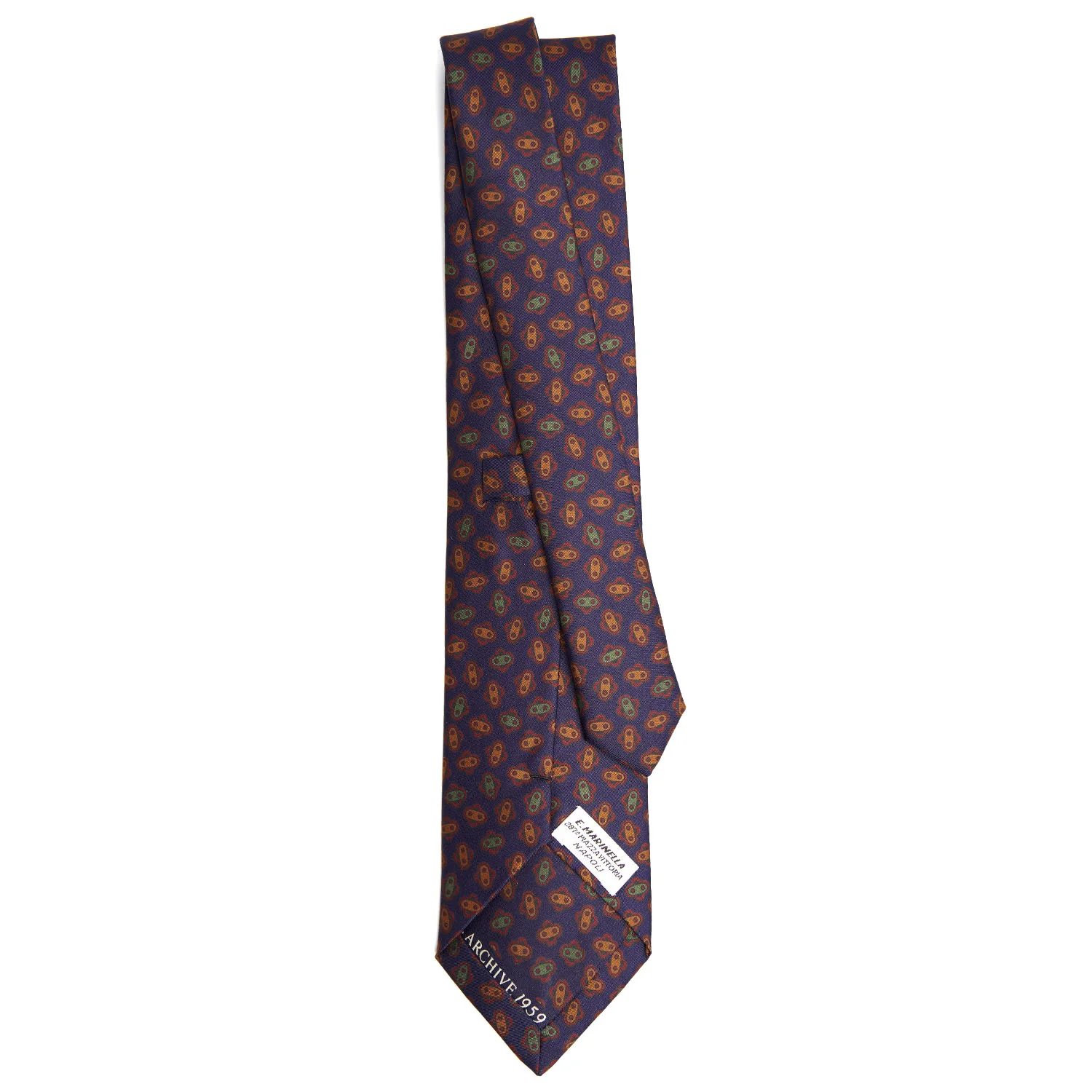 This tie is part of the Archivio collection which offers historical prints from the 1930s to the1980s in a modern way. The patterns of the 1950s are characterised by smaller, closer patterns. The "fiorellino" or little flower, a typical element of Marinella's designs, makes its entrance. There is also a return of paisley sometimes combined with small flowers, often tone on tone. A classic tie with touches of originality.